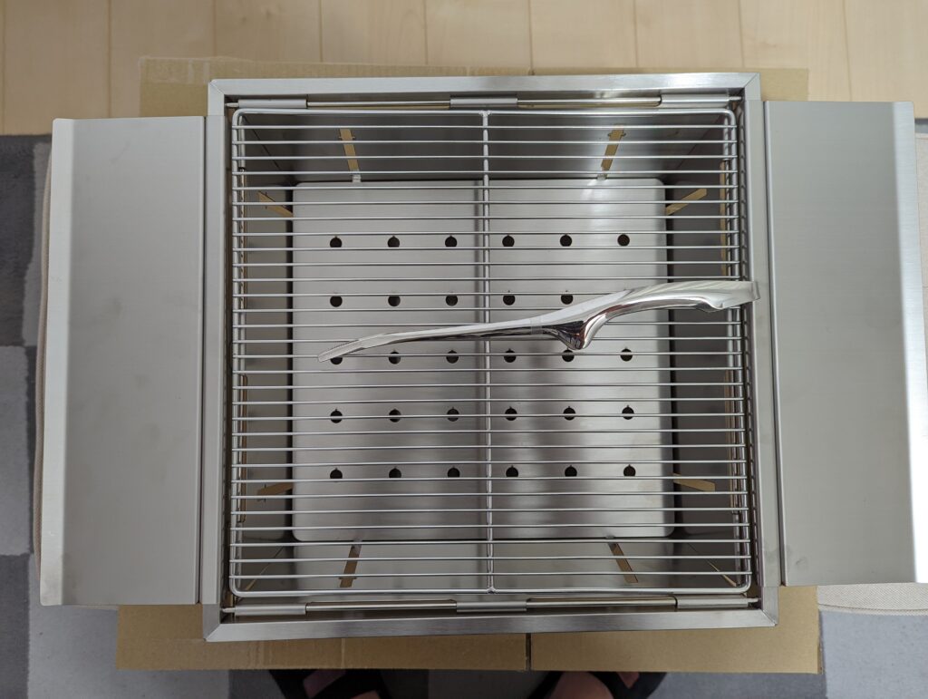 炭を追加したい時などは都度網を持ち上げる必要があり、若干の使いづらさを感じます。