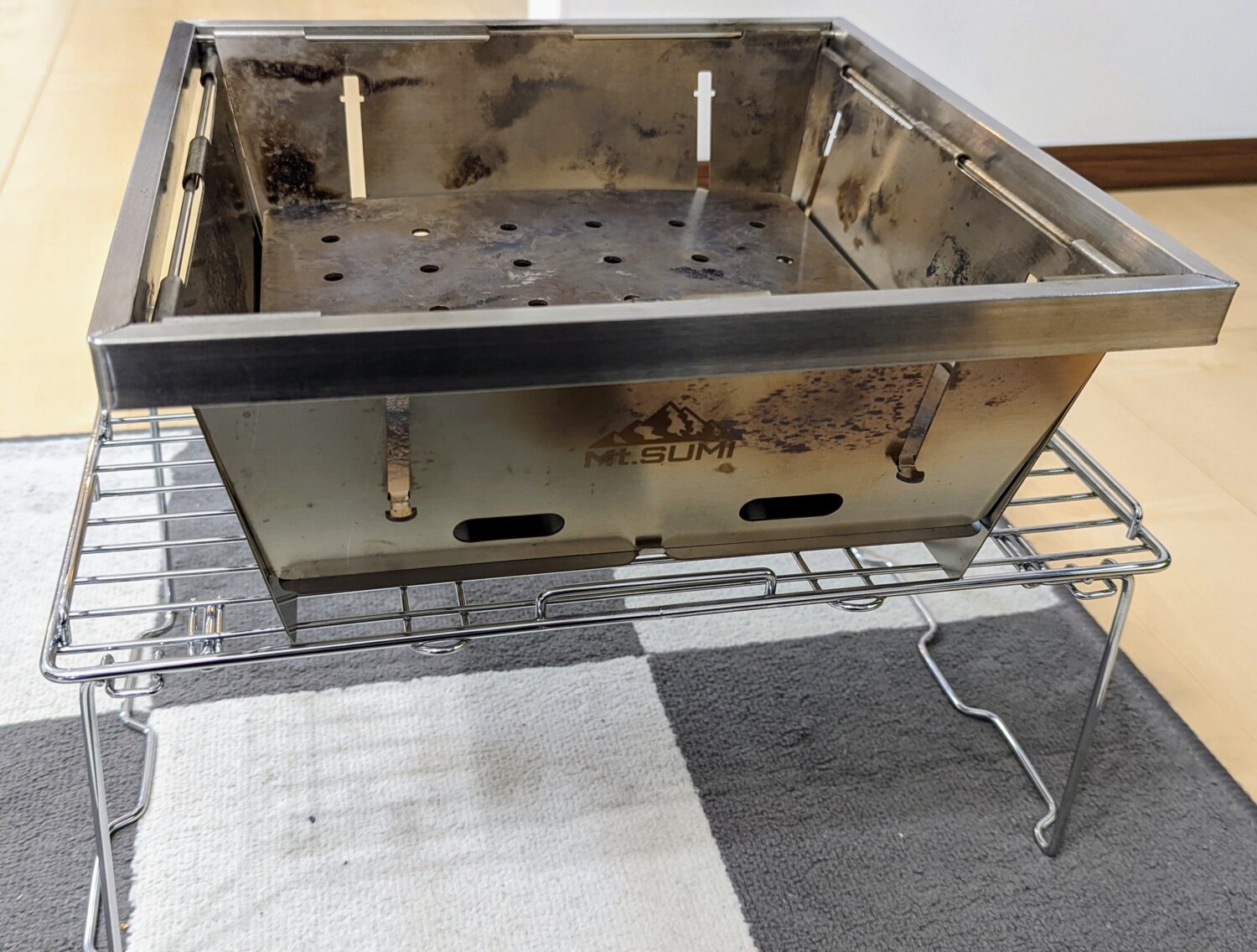 ですが、火床から網の設置位置まで高さはあまり無いので焚き火で調理するような使用方法は向いていないと感じます。